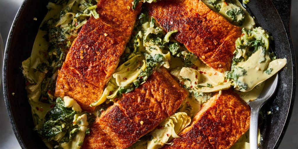 Creamy Spinach and Artichoke Glazed Salmon Recipe